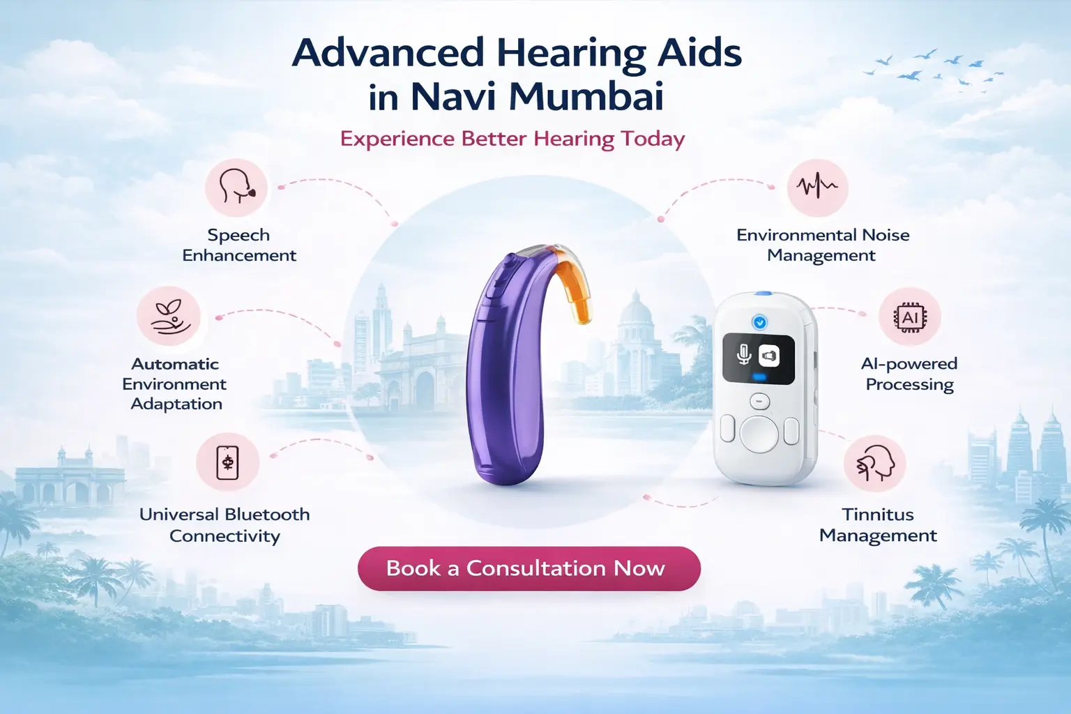 Looking for reliable hearing aids in Navi Mumbai? We provide a wide range of digital and advanced hearing solutions designed to meet every budget and hearing requirement. From rechargeable and Bluetooth-enabled devices to nearly invisible models, you’ll find the perfect option for clarity, comfort, and everyday convenience. Our audiologists offer expert hearing tests, personalized guidance, easy EMI options, and full support for insurance coverage—making your journey to better hearing smooth and stress-free.